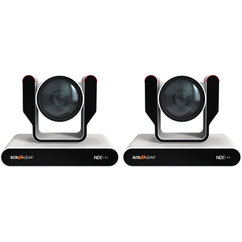 - 2 x BZBGEAR Live Streaming 4K NDI PTZ Camera with Tally Lights & 12x Optical Zoom (White)