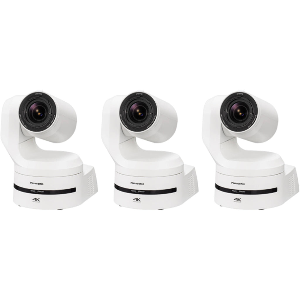 Panasonic Three AW-UE160 UHD 4K 20x PTZ Camera Bundle (White)