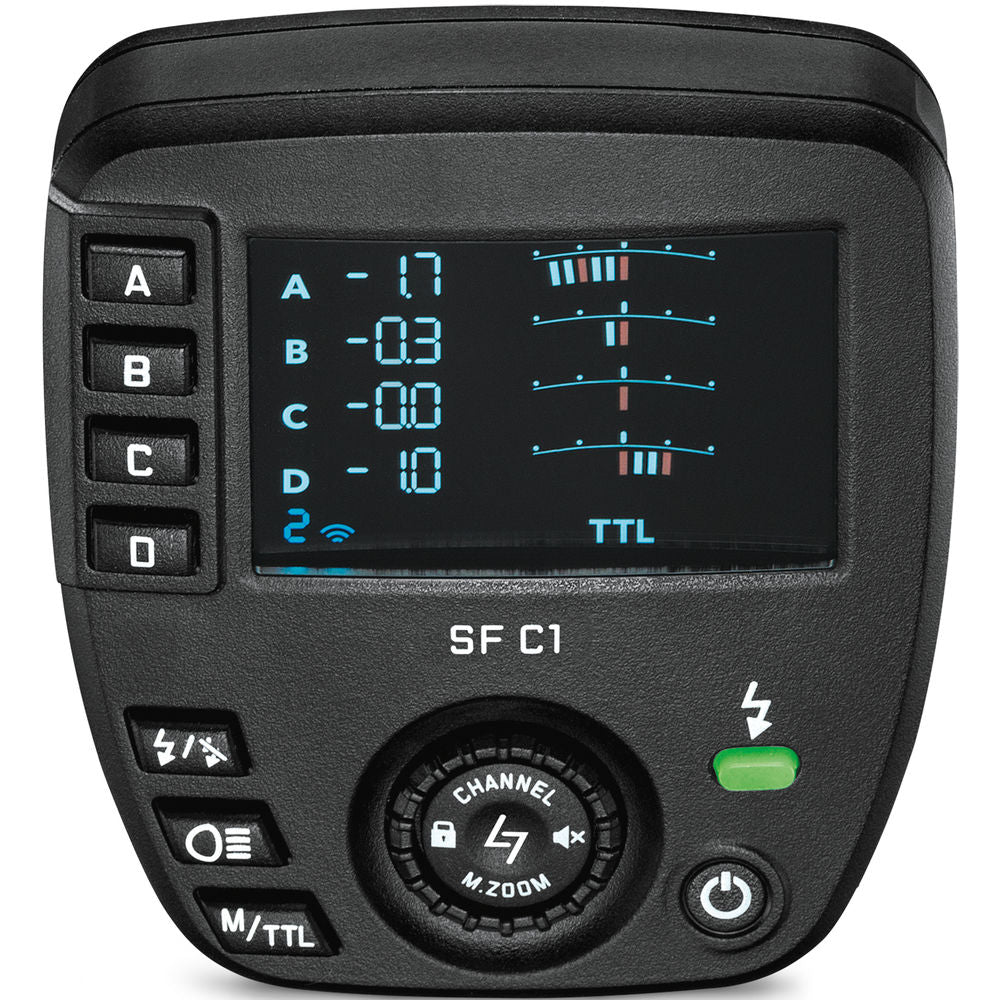 Dedicated to the Leica SF 60 flash, the SF C1 Remote Control Unit allows you to shoot with wireless freedom as well as fire and control multiple flashes at once using 2.4 GHz radio transmission. This unit has a triggering range of up to 328' and provides eight channels and four groups for creating and wirelessly adjusting multi flash setups.