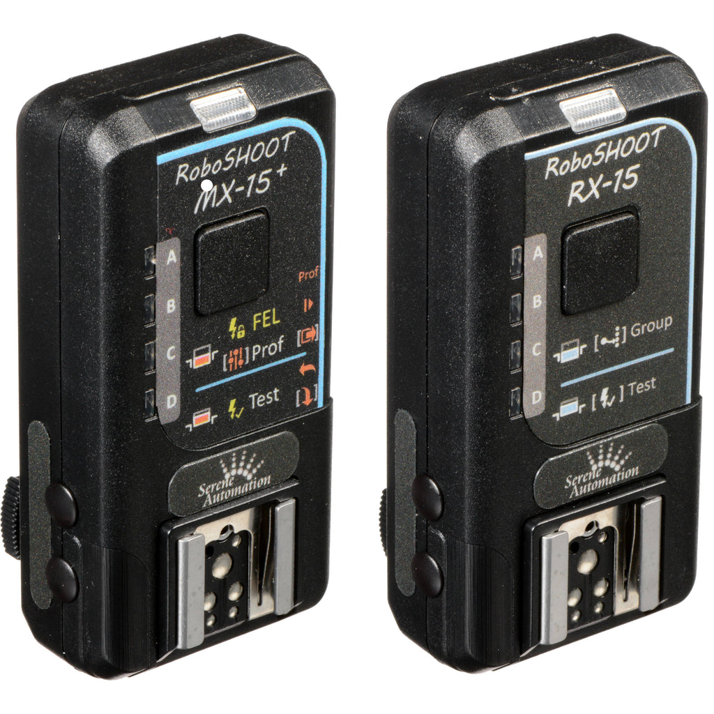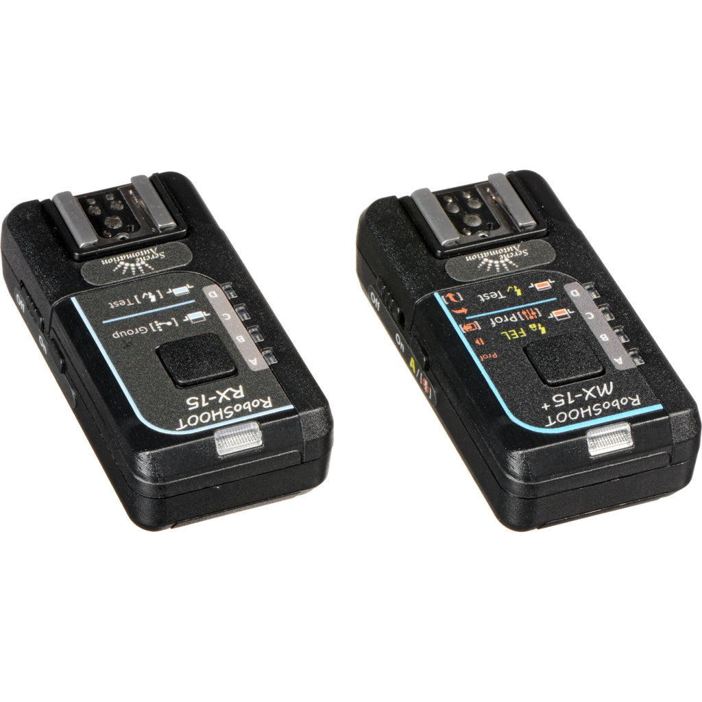 Take advantage of high-speed sync and full TTL support for your remote flashes with your X-series Fujifilm cameras by using this MX-15+ / RX-15 Wireless TTL Flash Trigger Kit from RoboSHOOT . Featuring the MX-15+ trigger, this Fujifilm TTL and Nikon i-TTL-compatible system now supports high-speed sync at up to 1/8000 second, enabling even more shooting setups. This 2.4 GHz trigger kit bundles together the MX-15+ master with an RX-15 receiver for fast, effective shooting with an operating range of about 45-60'. The master unit also offers a pass-through TTL hot shoe for having an on-camera flash as well as a remote unit. The system has support for various in-camera controls, as well as settings for flash enable/disable, flash exposure lock, and group profile selection. Additionally, both the master and slave units runs on two AAA batteries.