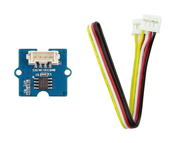 Grove - Temperature Sensor uses a thermistor to measure ambient temperature. The resistance of thermistor changes based on ambient temperature. This resistance value alters the output of a voltage divider which is measured by an analogue input pin and converted to a temperature value. The operating range is -40 to 125°C , with an accuracy of 1.5°C .