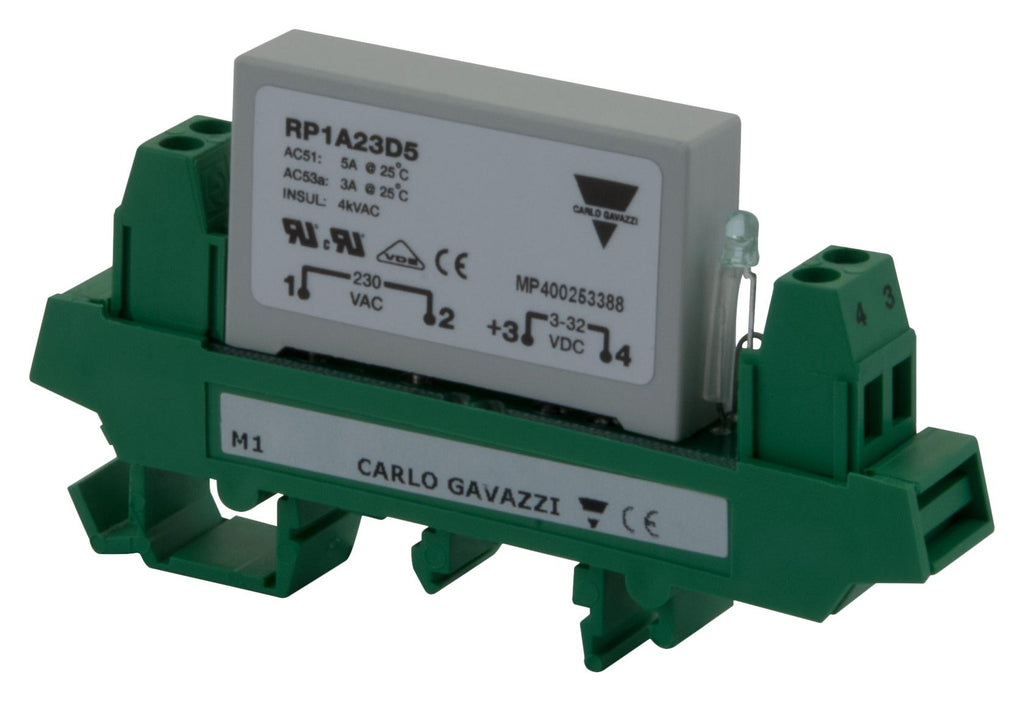 CARLO GAVAZZI RP1A23D5M1 Solid State Relay, SPST-NO, 5 A, 265 VAC, DIN Rail, Box Clamp, Zero Crossing