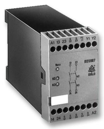 This is a Safety Relay, DPST, 24 VDC, 5 A, BD 5987 Series, DIN Rail, Screw product from DOLD & SOEHNE with the model number BD 5987.02/001 DC 24V