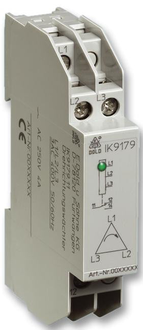 This is a Phase Monitoring Relay, Sequence, IK 9179 Series, SPST-NC, DIN Rail, Screw, 230 VAC product from DOLD & SOEHNE with the model number IK 9179.11 3AC 50/60HZ 400V