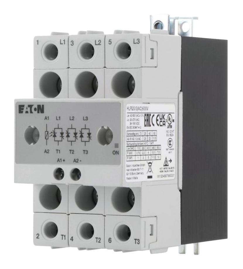HLR20/3(AC)600V is a 3-phase, solid-state relay. It is certified by UL 508, EAC, CCC, UL-file number-E251034, UL report applies to both US and Canada.