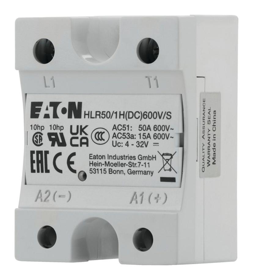 HLR50/1H(DC)600V/S is a 1-phase, high fuse protection, hockey puck, solid-state relay. It is certified by EAC, UL 508, CCC, UL-file no-E338590, CSA-file no-603498.