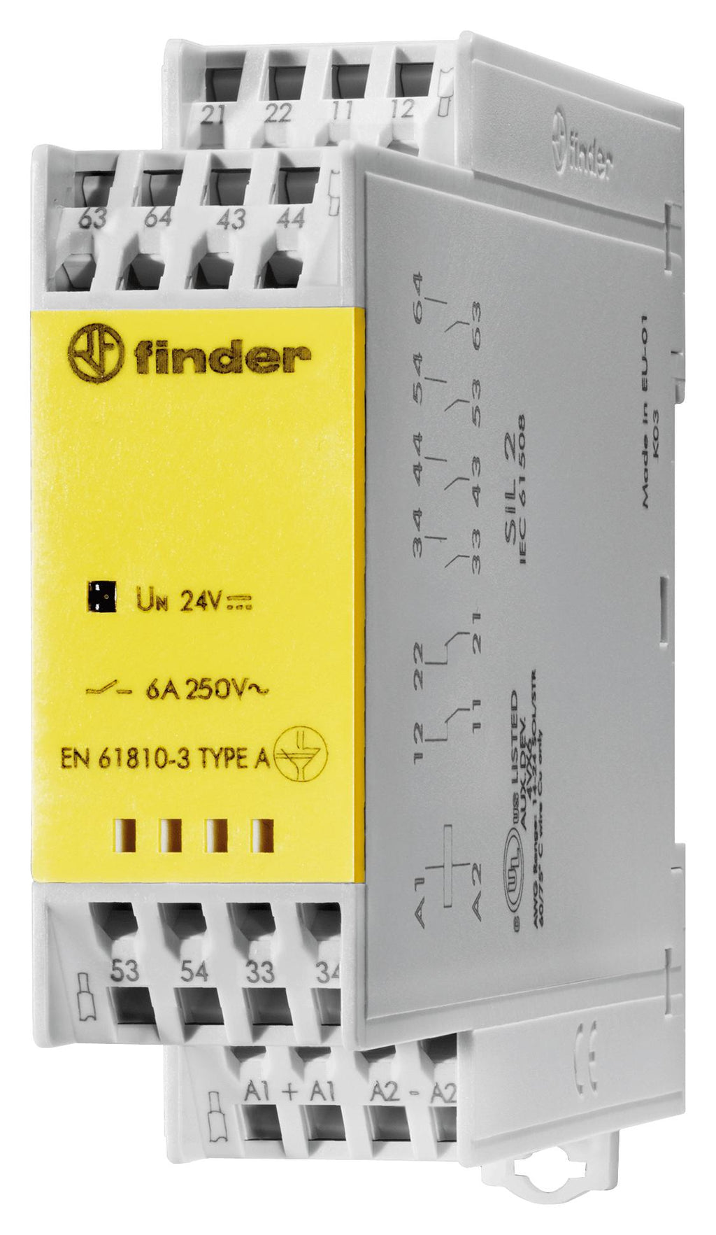 FINDER 7S.36.9.024.5510 Safety Relay, 24 VDC, 5NO / 1NC, 7S Series, DIN Rail, 6 A, Screw