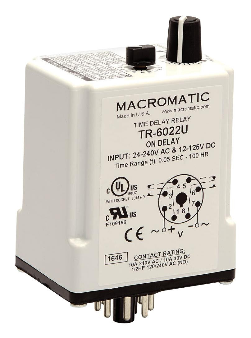 This is a TIME DELAY RELAY, DPDT, 0.05S-0.5S, 240V product from MACROMATIC CONTROLS with the model number TR-6022U