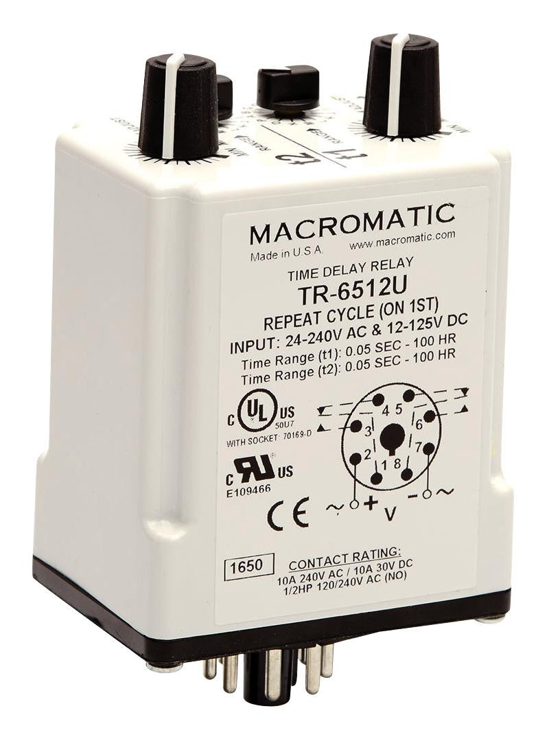 This is a TIME DELAY RELAY, DPDT, 0.2H-2H, 240V product from MACROMATIC CONTROLS with the model number TR-6312U