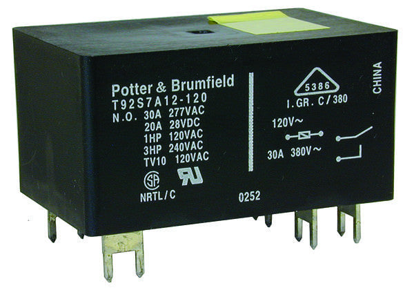 This is a RELAY, DPST-NO, 277VAC, 28VDC, 40A product from POTTER&BRUMFIELD - TE CONNECTIVITY with the model number T92S7D12-12.