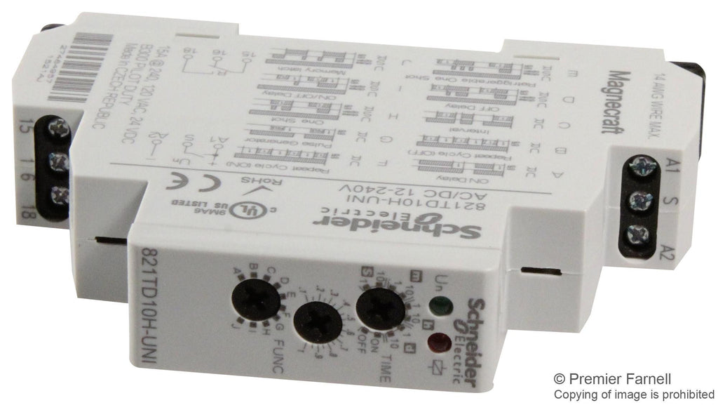 This is a TIME DELAY RELAY, DPDT, 10DAYS, 240VAC product from SCHNEIDER ELECTRIC/MAGNECRAFT with the model number 822TD10H-UNI