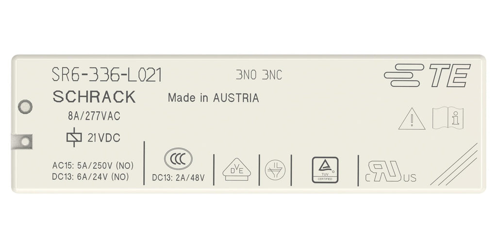 SCHRACK - TE CONNECTIVITY 2-1558736-7 Power Relay, 3PST-NO, 3PST-NC, 21 VDC, 8 A, SR6 Series, Through Hole, Non Latching