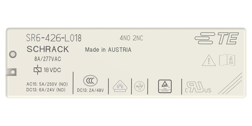SCHRACK - TE CONNECTIVITY 2-1558737-6 Power Relay, 4PST-NO, DPST-NC, 18 VDC, 8 A, SR6 Series, Through Hole, Non Latching