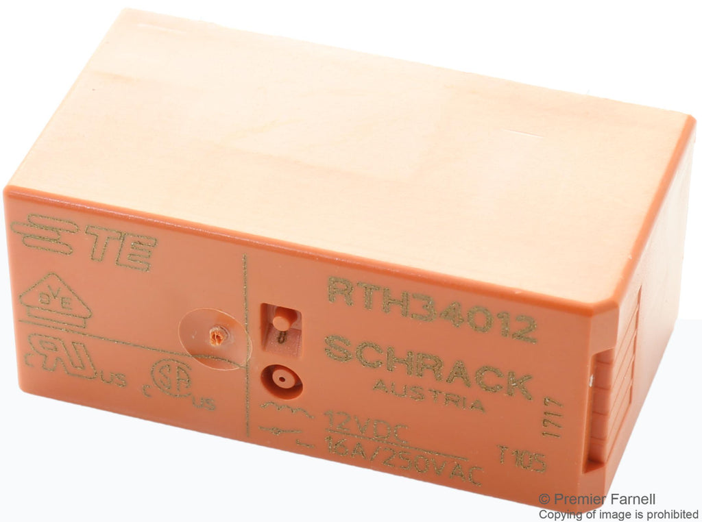 SCHRACK - TE CONNECTIVITY RTH34012 Power Relay, SPST-NO, 12 VDC, 16 A, RTH, Through Hole, Non Latching 9-1415006-1