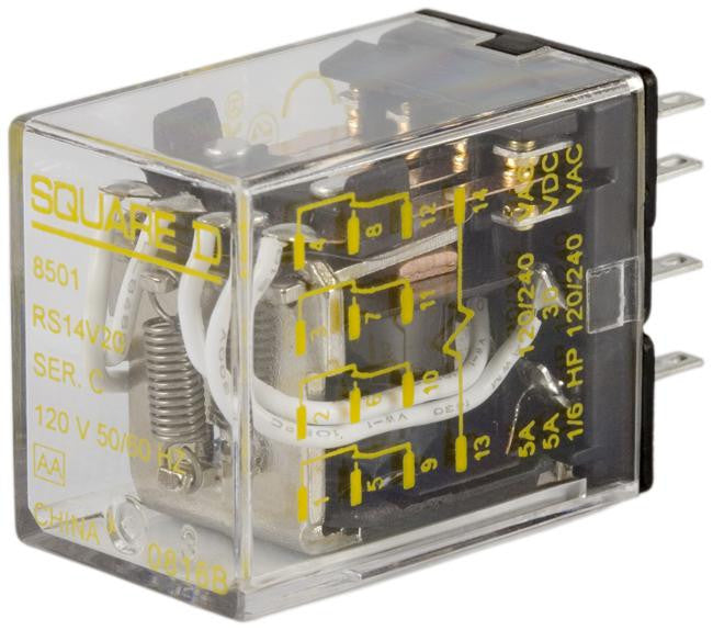 This is a RELAY, 4PDT, 240VAC, 5A product from SQUARE D BY SCHNEIDER ELECTRIC with the model number 8501RS14V20