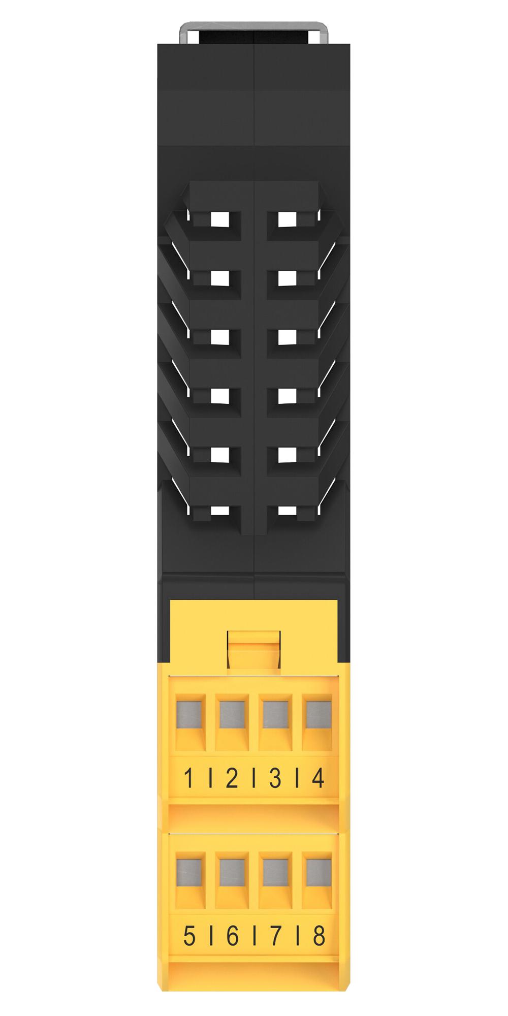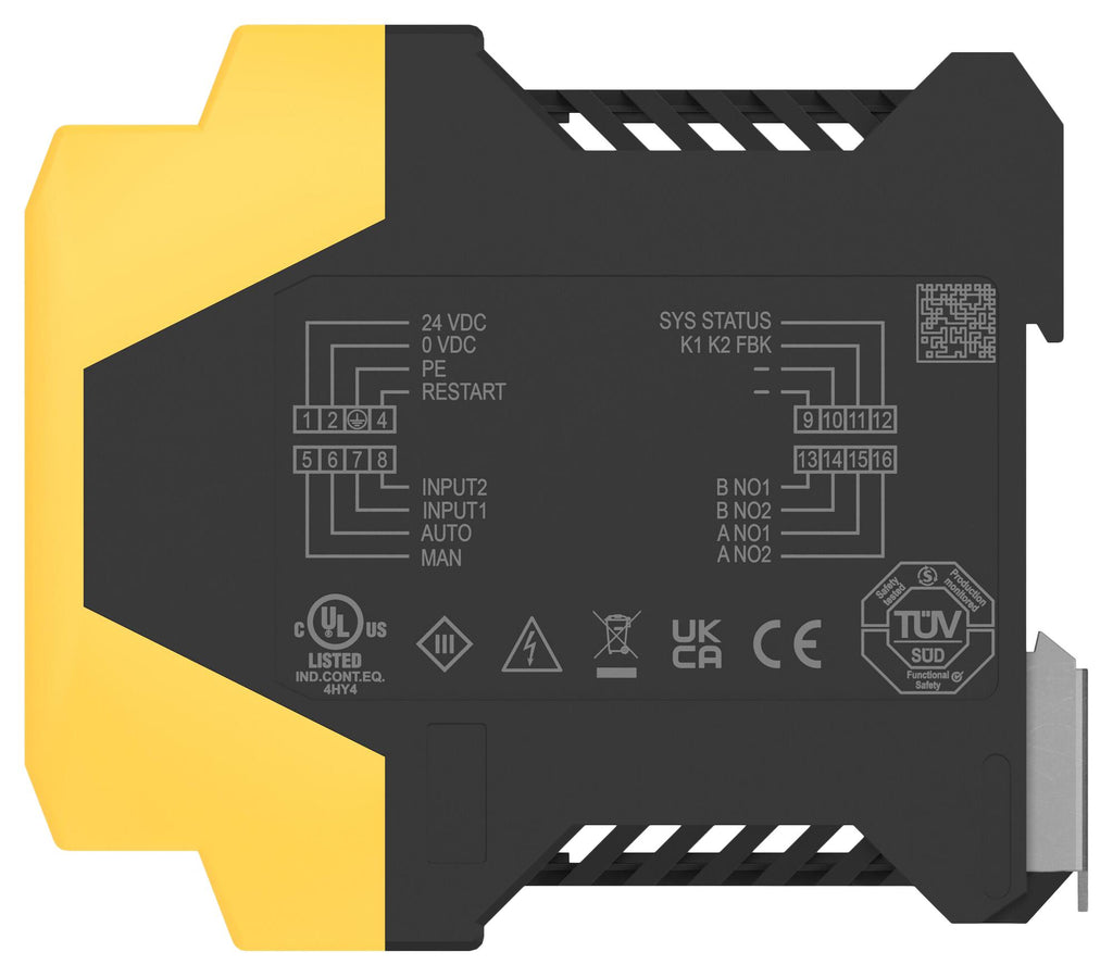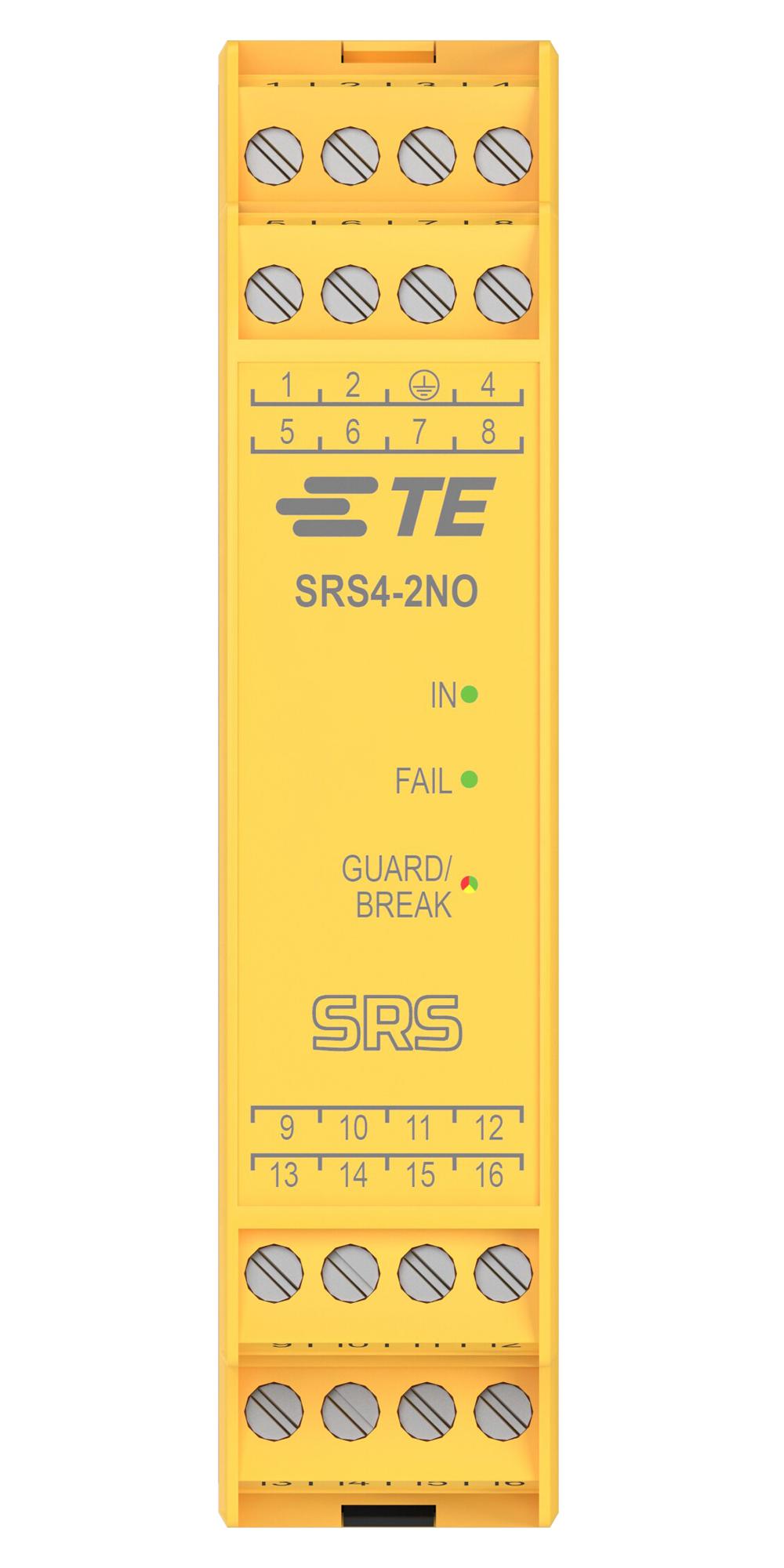 SRS4-2NO is a SRS series safety interface, single function relay. It is device used to control the safety-related part of control systems in such a way that machine operation is only allowed when safety is confirmed. It helps ensure safety by controlling signals coming from inputs like safety light curtains, emergency stop switches and locking switches and control equipment of the machine such as contactors and other devices connected to the outputs according to the results of this detection. It is a safety interface for 1 OSSD device (like SLC2 and SLC4 safety light curtains) and devices equipped with 2 solid state outputs.