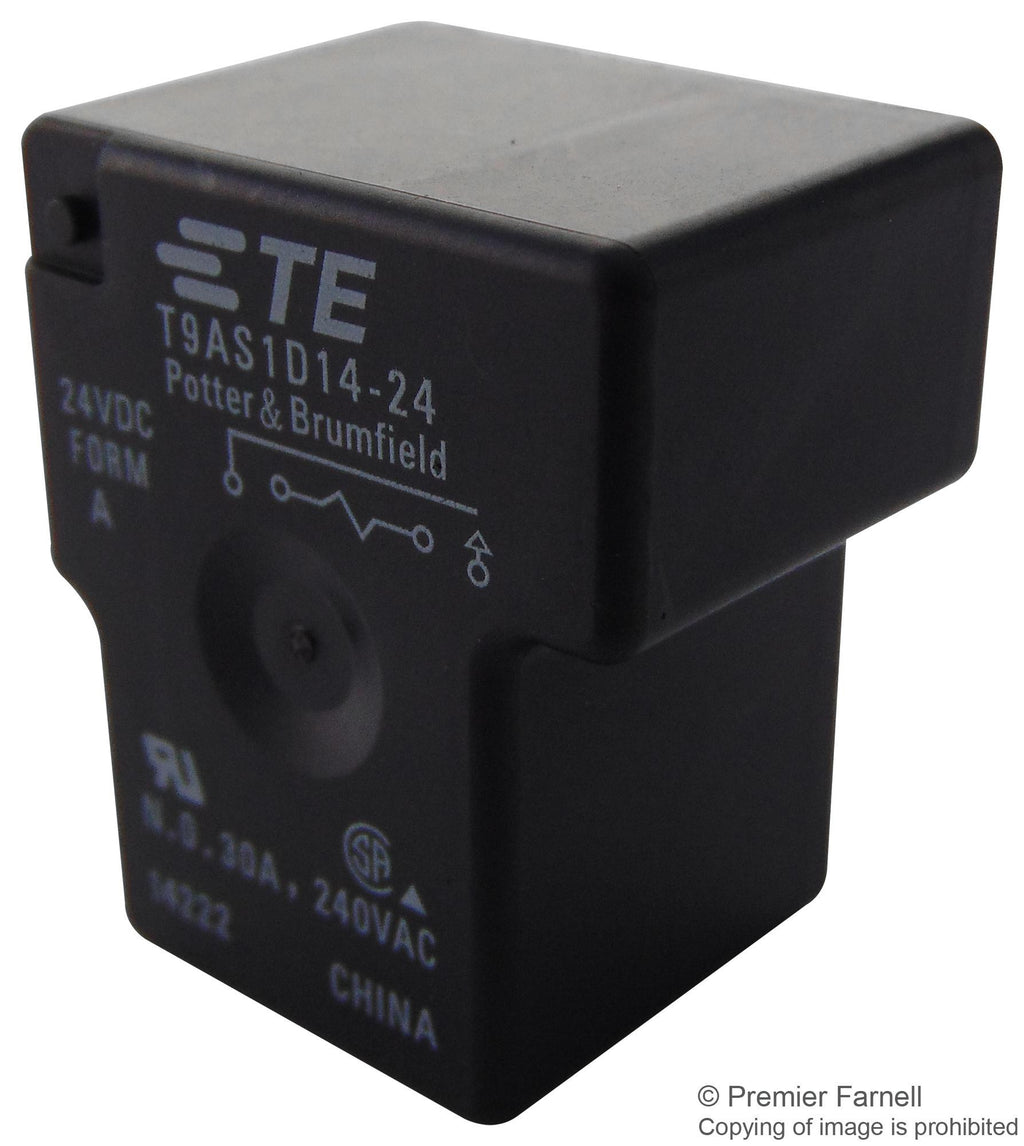 This is a General Purpose Relay, T9A Series, Power, Non Latching, SPST, 24 VDC, 30 A product from TE CONNECTIVITY with the model number T9AS1D14-24