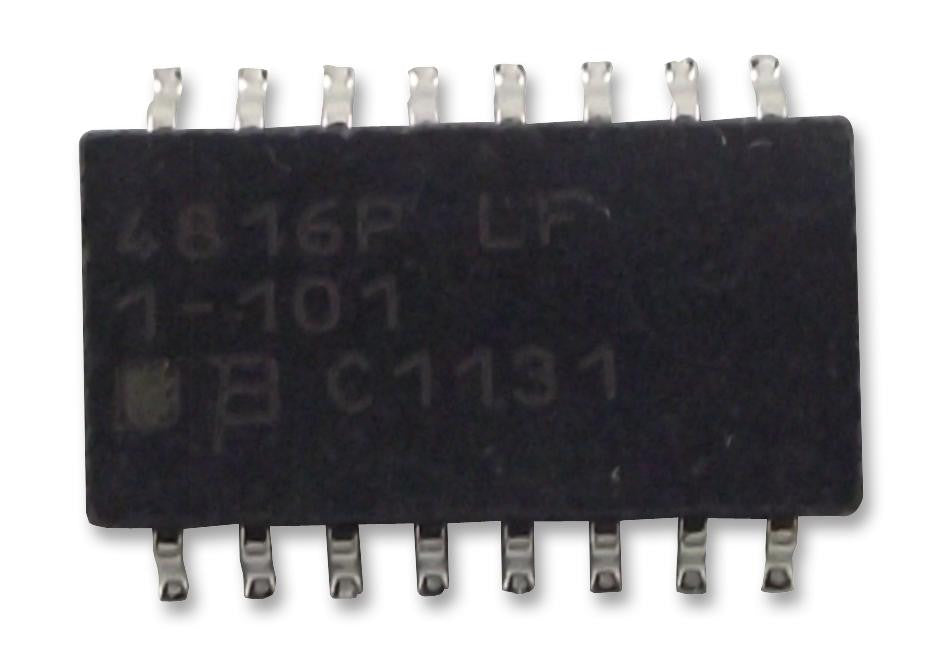 The 4816P-T01-102LF is a 1kR 160mW 16-pin 8-element thick film surface-mount medium body Resistor Network with thermoplastic body and solder coated copper lead frame. It has an isolated electrical configuration and compliant leads to reduce solder joint fatiguing.