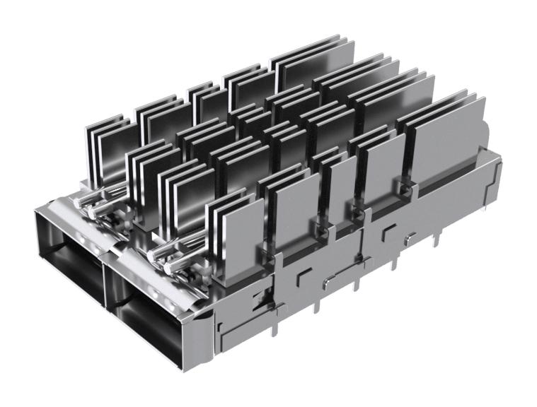 This is a UE36C2622106A4A Cage , QSFP-DD, 1 x 2 (Ganged), With Heat Sink, With Light Pipe, Press-Fit product from AMPHENOL COMMUNICATIONS SOLUTIONS with the model number UE36C2622106A4A