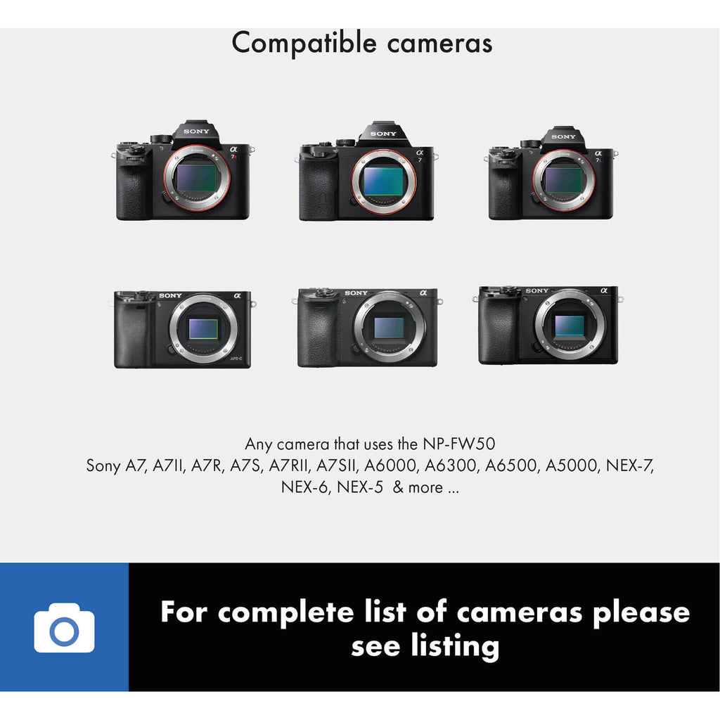 The USB-C to Sony NP-FW50 Dummy Battery Adapter from Blind Spot Gear is a power adapter that replaces the original battery inside the camera's battery chamber. Use it to connect your camera to an external USB-C power source.