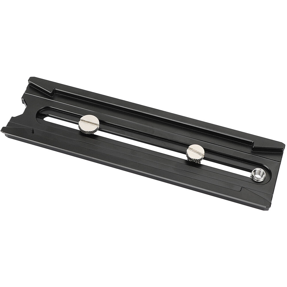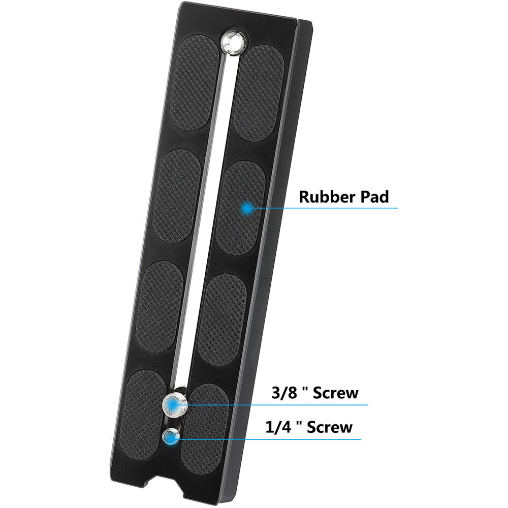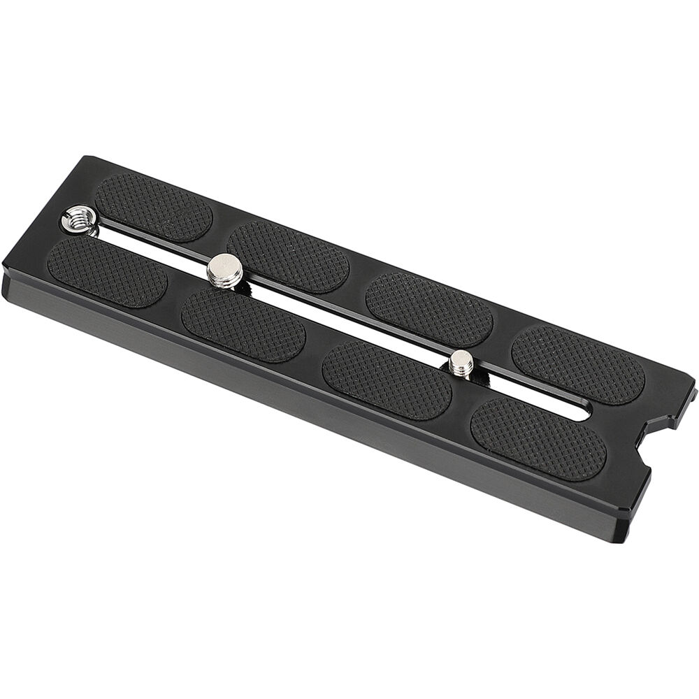 Incorporate this CAMVATE Manfrotto-Type Sliding Quick Release Camera Plate into your Manfrotto tripod system as either your principal or extra mounting plate for speedy integration of your camera. The plate has a sliding range of 5.5" and features two mounting screws, one 1/4"-20 and one 3/8"-16. A 1/4"-20 thread at one end offers a place to mount additional accessories or further secure the plate with another screw from your tripod. Rubber pads protect the bottom of your camera from scratches, and its overall aluminum alloy construction creates a durable and lightweight mounting plate.