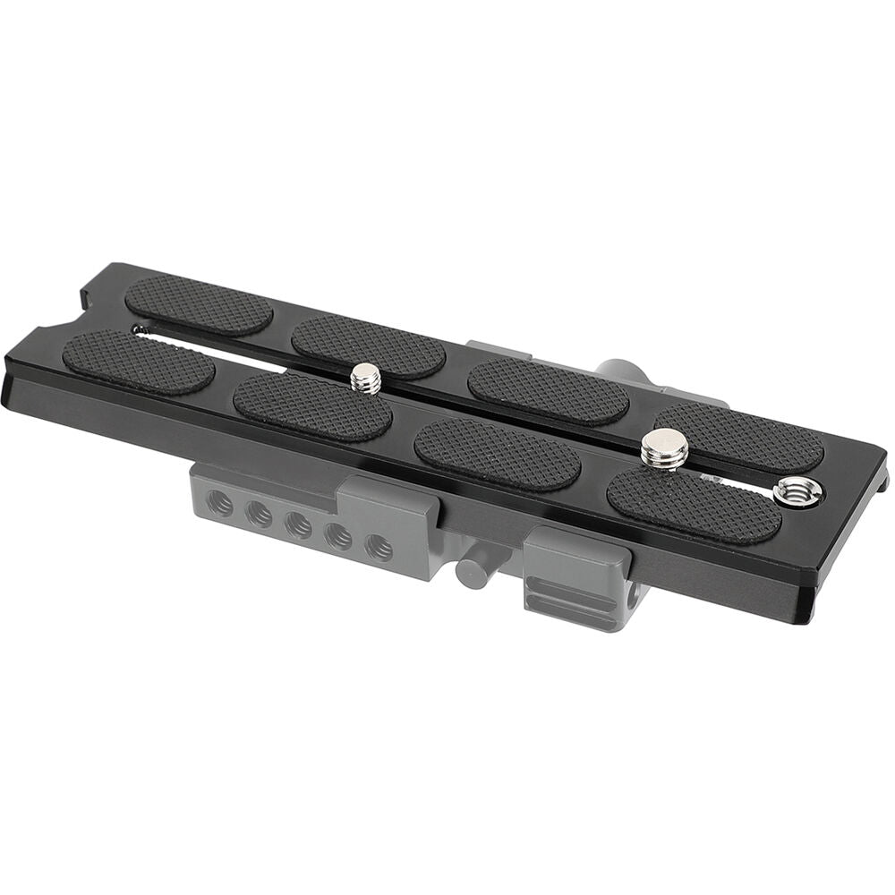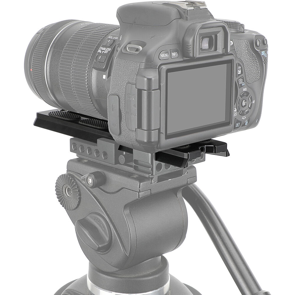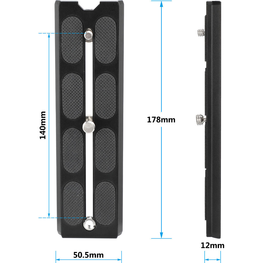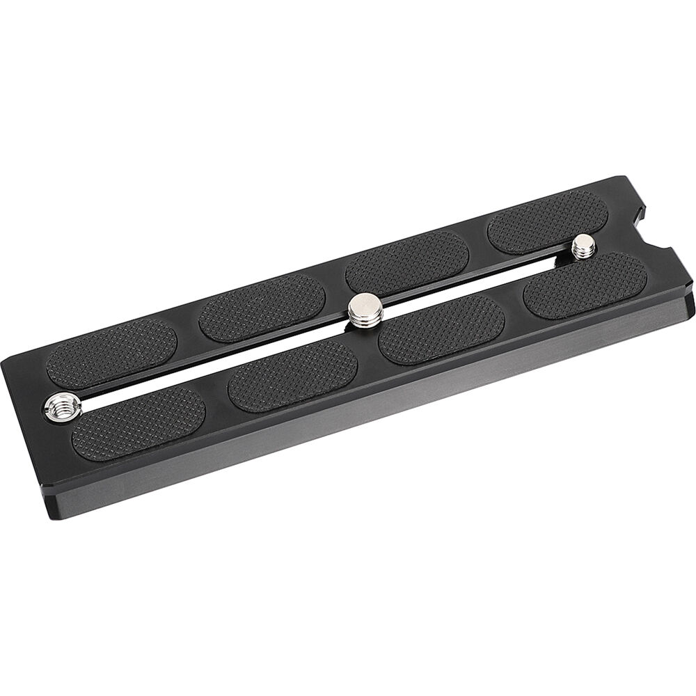 Incorporate this CAMVATE Manfrotto-Type Sliding Quick Release Camera Plate into your Manfrotto tripod system as either your principal or extra mounting plate for speedy integration of your camera. The plate has a sliding range of 5.5" and features two mounting screws, one 1/4"-20 and one 3/8"-16. A 1/4"-20 thread at one end offers a place to mount additional accessories or further secure the plate with another screw from your tripod. Rubber pads protect the bottom of your camera from scratches, and its overall aluminum alloy construction creates a durable and lightweight mounting plate.