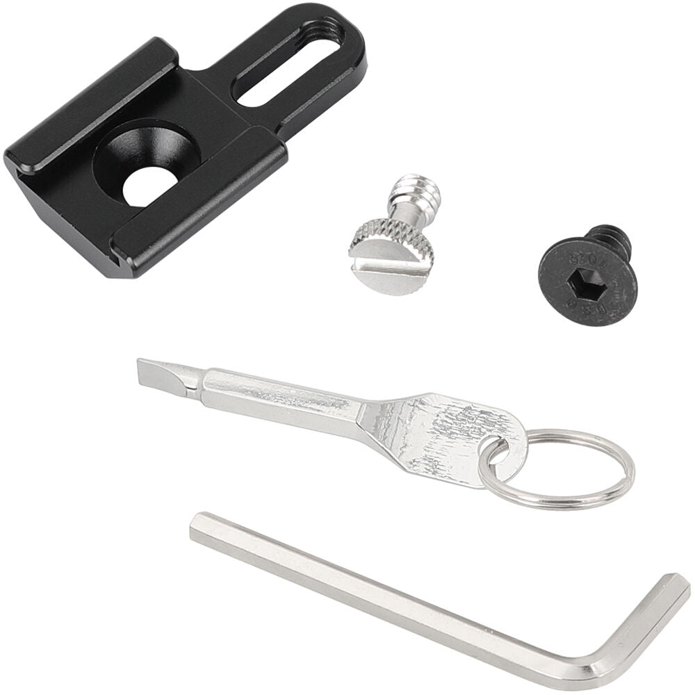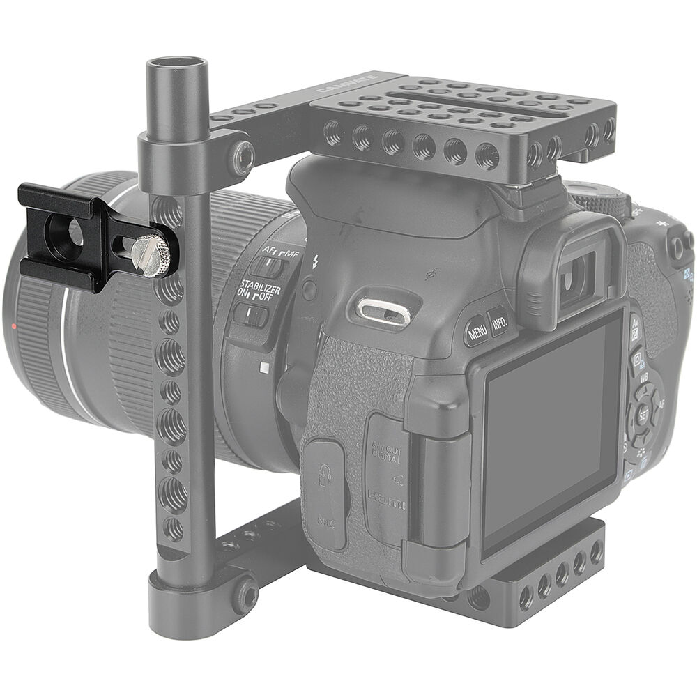 The Universal Cold Shoe Mount with 1/4"-20 Mounting Screw from CAMVATE comes with a 1/4"-20 mounting groove that facilitates mounting onto a camera cage using the included shoe screw. The sturdy, aluminum alloy universal cold shoe allows the mounting of shoe accessories, such as LED lights, a top handle, or a microphone.