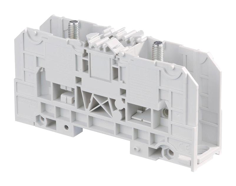 This is a DIN Rail Mount Terminal Block, 2 Ways, 1 AWG, 35 mm², Stud, 125 A product from ENTRELEC UK with the model number 1SNA190001R2000