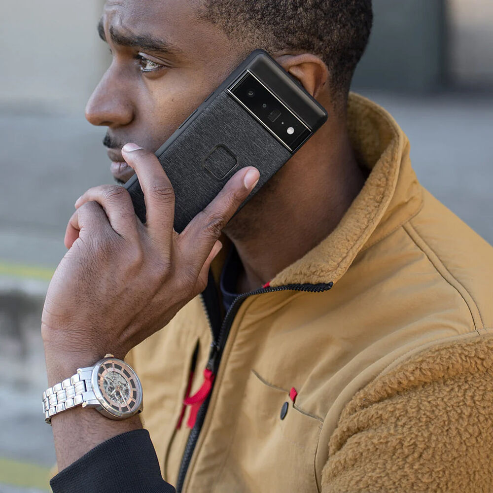 More than a smartphone case, the Everyday Case for Pixel 7A from Peak Design is a part of a larger Peak Design Mobile ecosystem. This is due to the rounded square SlimLink connector on the back of the case. This magnetic locking connector is made from high-temperature neodymium magnets and high-strength ceramic, and is compatible with many SlimLink mounts and accessories. As a case, it offers robust all-around shock and drop protection, yet still remains slim and lightweight. It's also stylish, with its charcoal-colored weatherproof nylon canvas fabric shell that is 100% recycled and Bluesign-approved.