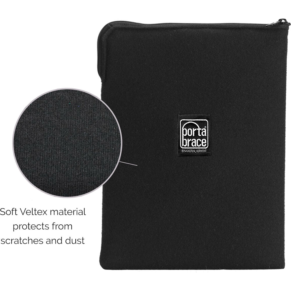 The exterior is made of soft 200-denier nylon cloth with a touch-fastener-friendly surface. The pouch can be used on its own or as an insert for many of the larger Porta Brace camera cases.