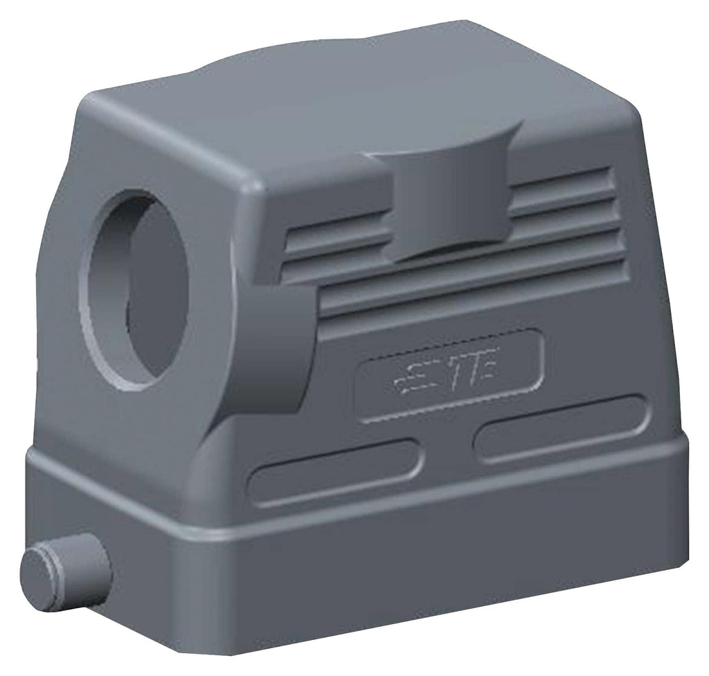 This is a T1310100120-000 Heavy Duty Connector , Hood, Side Entry, Aluminium Alloy Body, 1 Lever, H10B product from TE CONNECTIVITY with the model number T1310100120-000