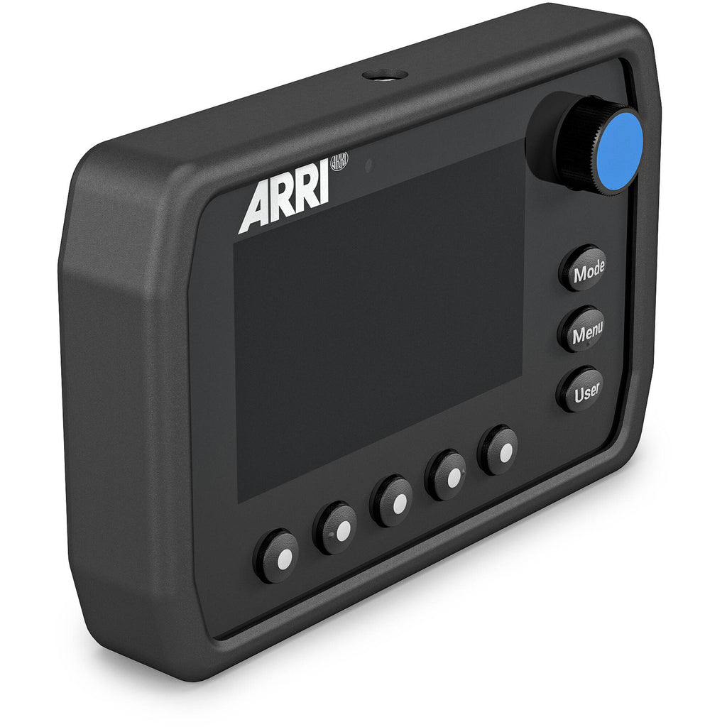 The Control Panel for Orbiter from ARRI allows adjustments of the Orbiter's functions such as color balance, special effects, and light intensity. The controller has a 4" full-color display, quick-navigation buttons, and integrated sensors, and can be separated from the fixture and used remotely via an optional 16.4' or 49.2' cable.