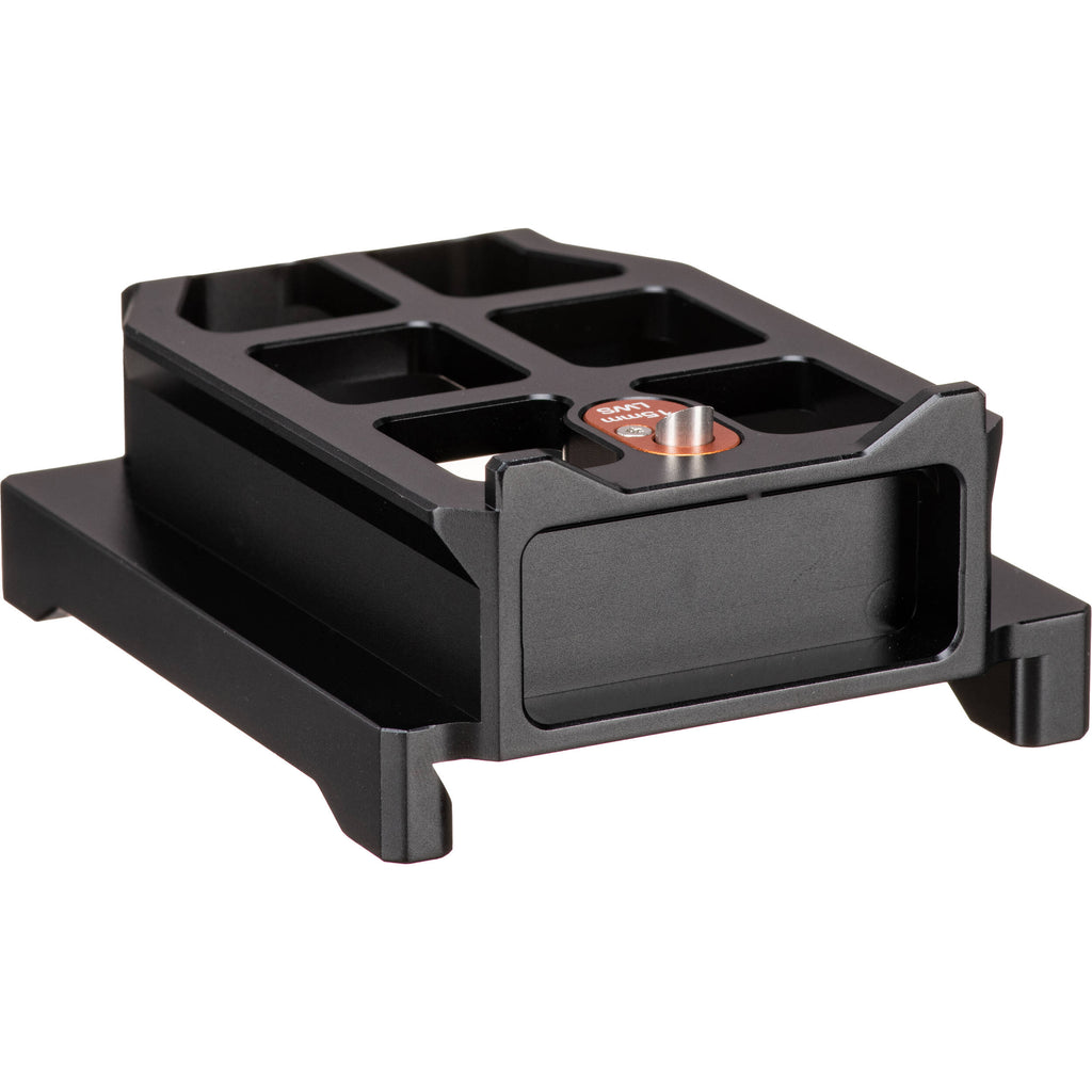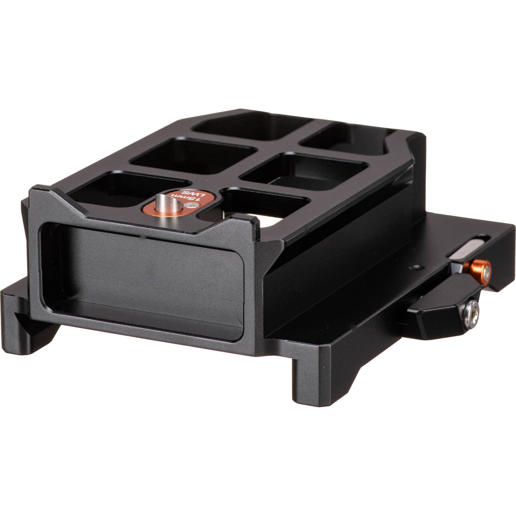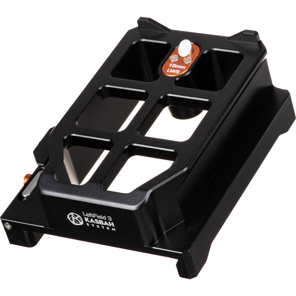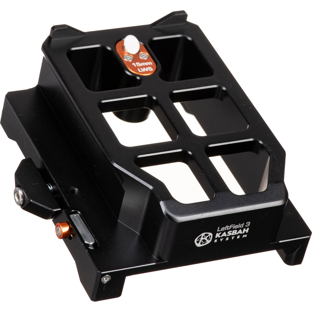 Easily dock and undock your camera rig onto a standard ARRI dovetail when using your KASBAH shoulder pad system with the LeftField universal 15mm baseplate with this LeftField 3 KASBAH Shoulder Pad ARRI Dovetail Riser from Bright Tangerine. The durable aluminum riser mounts onto the top of any ARRI-standard dovetail and can slide back and forth for balance adjustment using a guided track. It allows you to mount the universal baseplate on top when the KASBAH shoulder pad is mounted. The Open�Up system makes it easy to mount, adjust, and release your rig, and it features a safety wedge so it stays in place with no play.