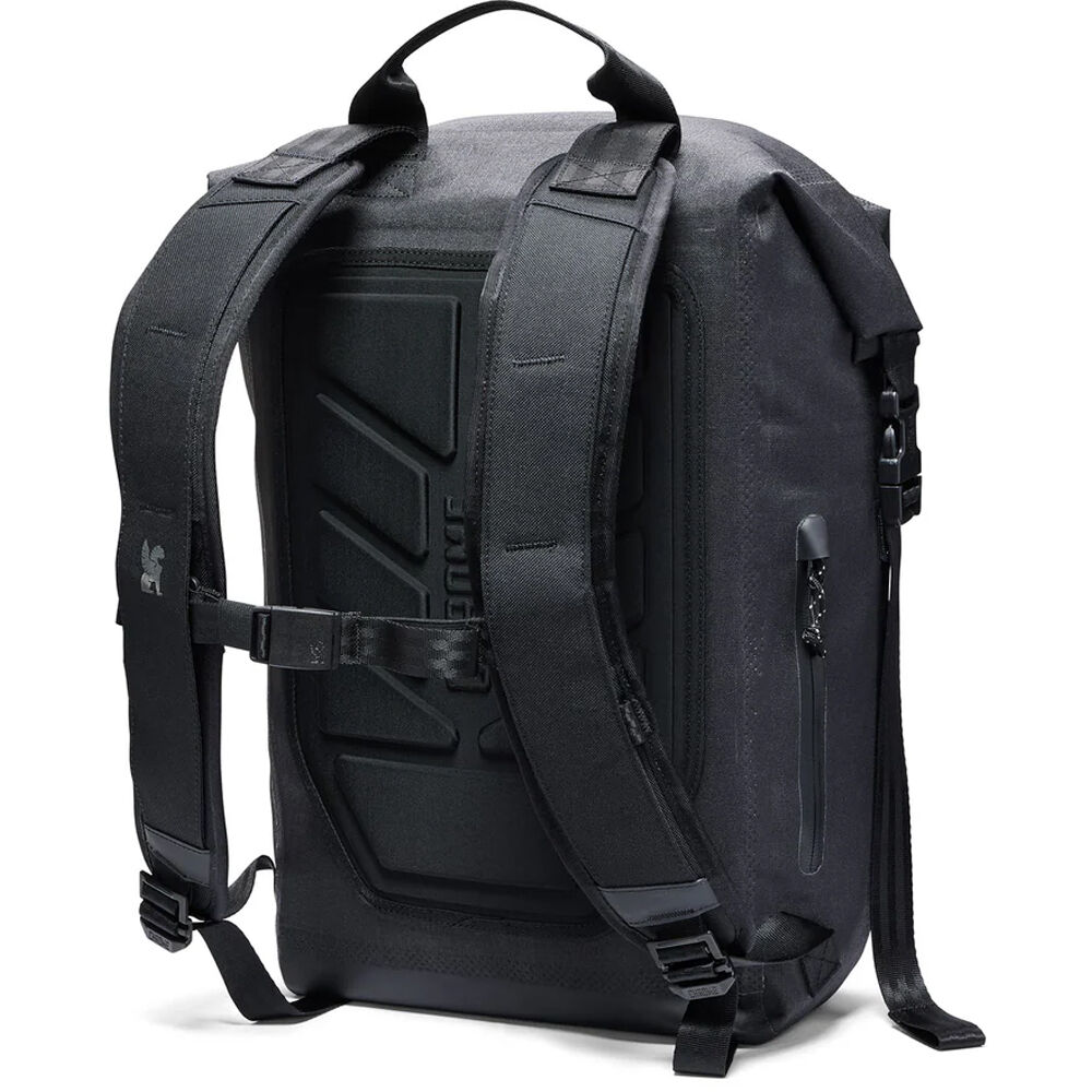 Keep your sensitive gear safe from wet conditions with the Urban Ex Backpack from Chrome Industries. This waterproof backpack has a magnetic roll top closure with knurled and welded seams to keep moisture out. The padded sleeve stores your 15" laptop and you can secure accessories to the exterior using the reflective attachment loops. Stay comfortable on long treks thanks to the ergonomic shoulder straps and 3D molded back panel.