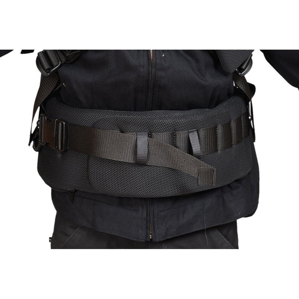 The Gimbal Rig vest is designed with wider front support that fits around the waist and over the hips. It is designed to provide lower back support that allows weight loads to be carried further away from the body.