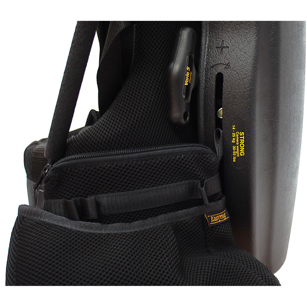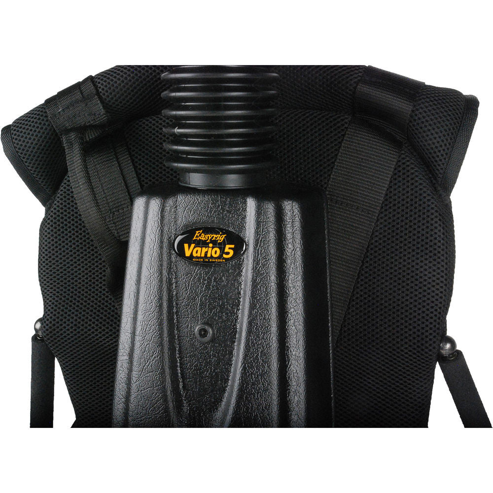 The Easyrig Vario 5 Strong with Large Cinema 3 Vest & Standard Arm is a body-worn support system that is adjustable to support camera rigs weighing 30 to 55 lb. The system consists of the Vario 5 strong support bar, the large Cinema 3 double shoulder vest, and a standard support arm. A carrying bag is also included for convenient storage and transport of the Easyrig system. The system works by using a suspension line to support the weight of the gimbal rig, taking the load off of your shoulder, neck, and arm muscles, and distributing it across your torso. The tension line is adjustable by turning a screw in the back, letting you dial in the appropriate amount of tension for your rig.