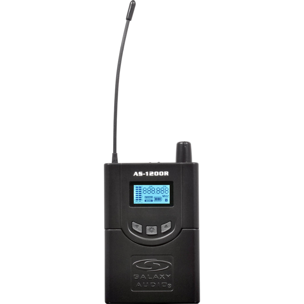 The Galaxy Audio AS-1200R Wireless Bodypack Receiver with EB10 Earbuds works with the AS-1200T transmitter (available separately) to provide wireless onstage monitoring for musicians and performers at a maximum distance of 300'.