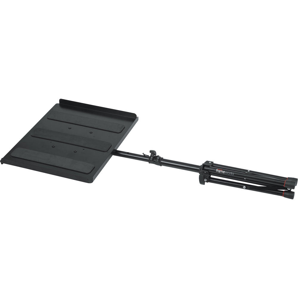 The Frameworks Compact Adjustable Media Tray from Gator Cases measures 19.25 x 15.75" and is designed for holding laptops, projectors, production samplers, drum pad controllers, sheet music, and small to medium keyboard controllers. The 1.2mm steel reversible tray features 1" flanged edges on one side and 100 x 100 VESA mounting on the other side for securing small monitors to the tray. The tray also includes adhesive EVA rubber pads, which affix to the surface of the tray and prevent shifting of gear.