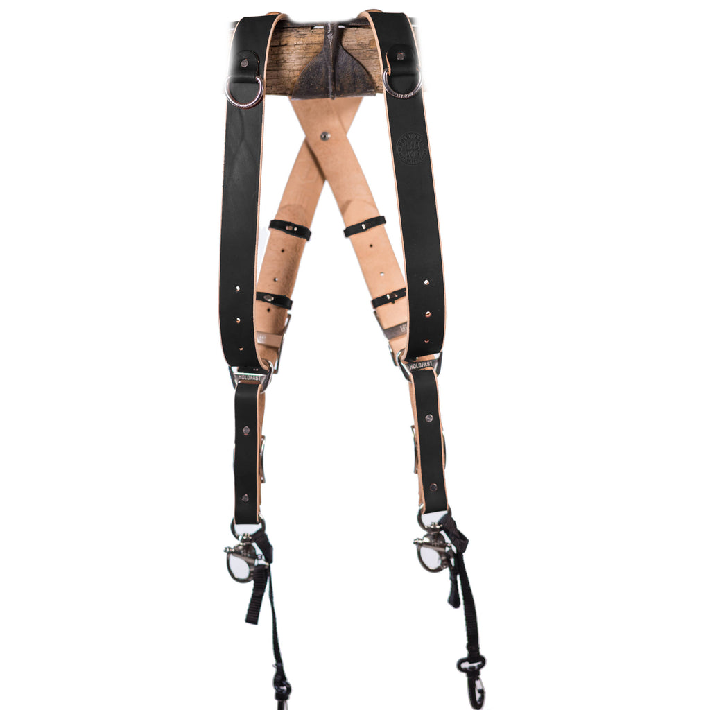 The medium MoneyMaker 2-Camera Harness with D-Rings in Bridle black from HoldFast Gear is made from U.S. native steer hides, with safety straps for ultimate security. The versatile design makes this an essential tool for the modern photographer.