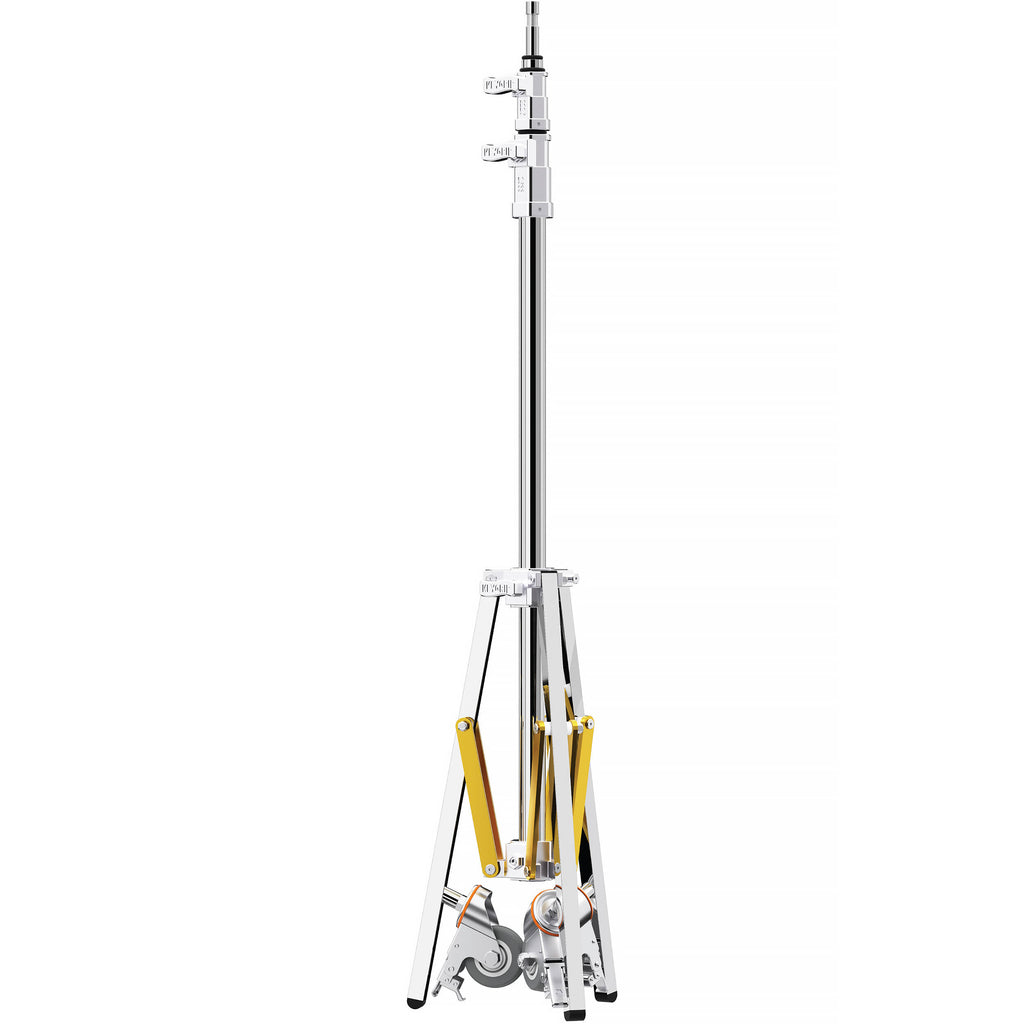 The 9.5' Keygrip Baby Roller 2-Stage Stand from Impact is precision manufactured to exact standards and specifications for pro video, photo, and cinematography applications. Three steel riser sections combined with beefy all-metal legs and castings will easily support light fixtures, grip equipment, and accessories. Precision manufacturing ensures steady and secure rigging for valuable studio gear and delivers long-lasting operation in the most demanding environments.