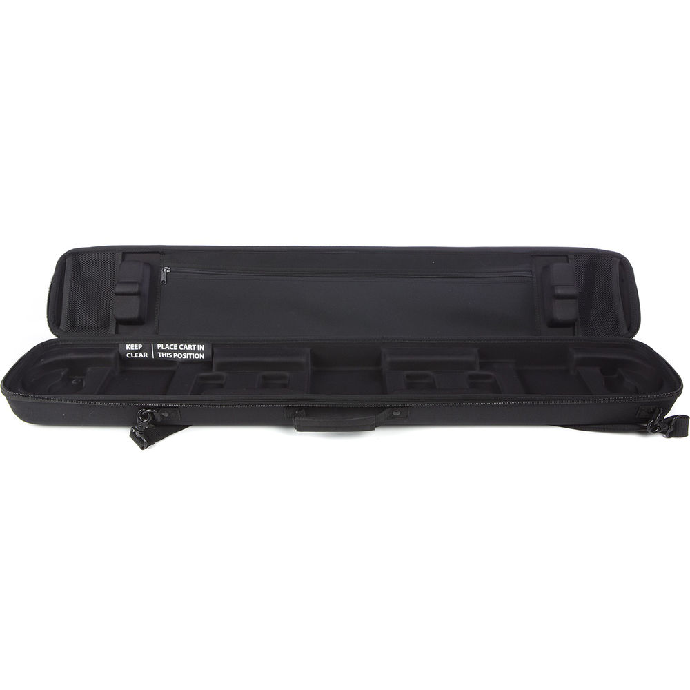 Pack your Pocket Dolly or Stealth slider away for storage or travel with this dedicated Rigid Slider Case from Kessler . This model was designed to hold a Standard slider and has a hardened exterior and molded foam interior that snugly holds the system and keeps it protected. There are also multiple areas and pockets for storing accessories and it comes with a removable shoulder strap.