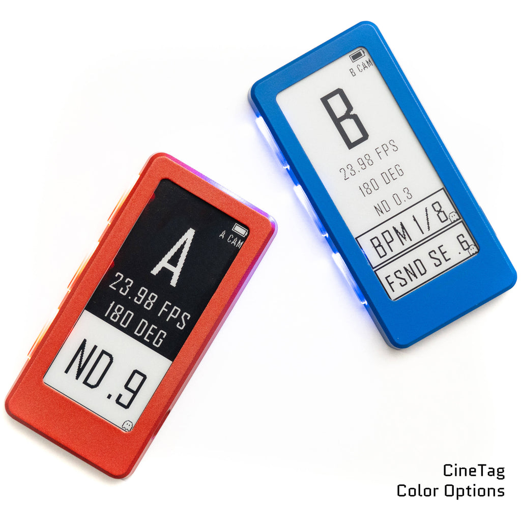 The Light Widow CineTag Display is an app-controlled display for filter and camera tags that attaches to a matte box or camera with hook-and-loop strips, while the e-paper screen is updated via the Light Widow app. This 2-pack of the red model offers users unlimited options for filter and camera tags, which can be selected from preexisting lists or fully customized. Additionally, filter names can be saved directly to the CineTag's memory, allowing users to quickly cycle through tags using onboard buttons without needing the app during a shoot.
