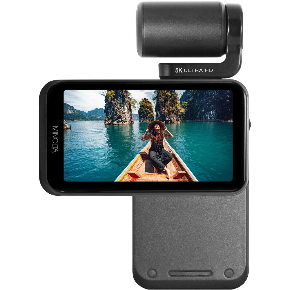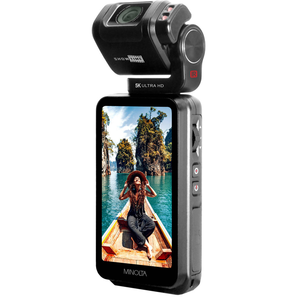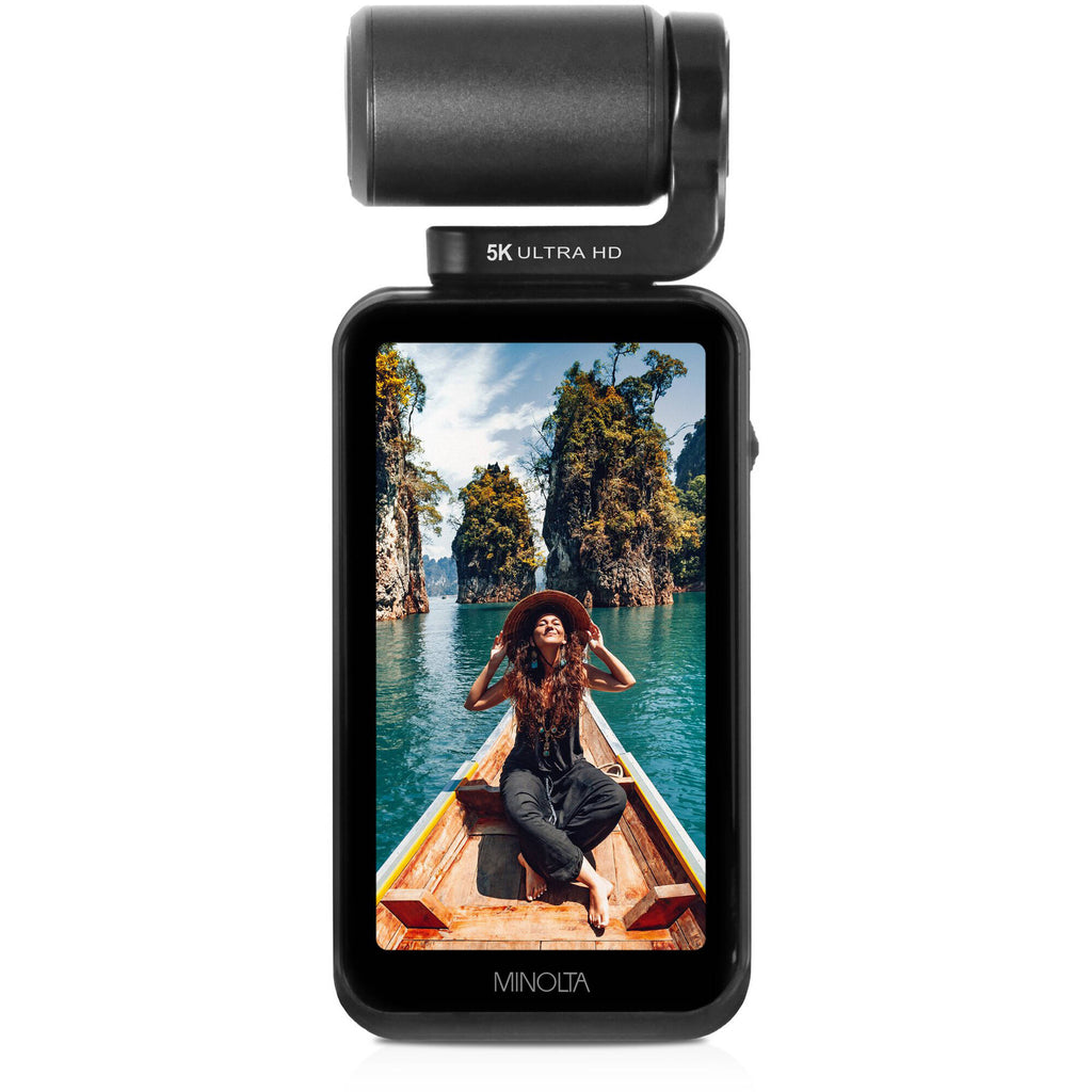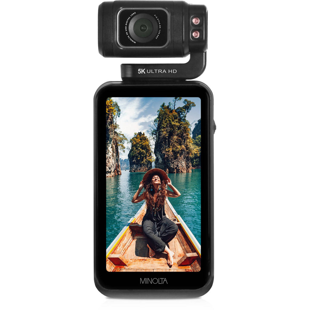 - Minolta MN5KGP1 UHD 5K Handheld Pocket Camcorder with Motorized Tilting Lens Head
