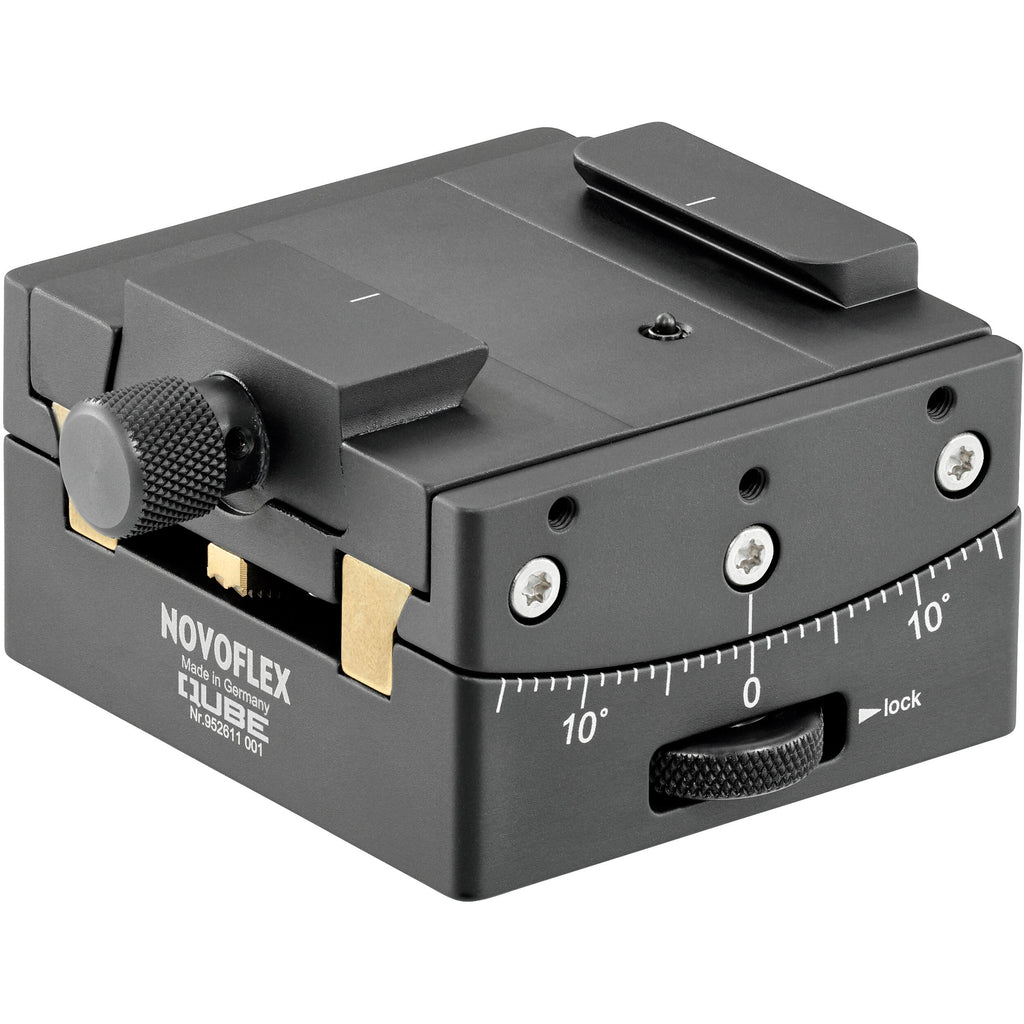 The Goniometer Head QUBE by Novoflex provides precise adjustments in a sophisticated and modular design. It enables the accurate alignment of DSLR and mirrorless cameras, technical cameras, bellows devices, complex macro setups, binoculars, telescopes, and rangefinders. This precisely geared head provides +/-15° of movement, and its integrated quick-release clamp is compatible with Arca-type UniQ/C plates and components. The base features a square Arca-type mount allowing two CUBE units to be stacked and combined if required, with movements either parallel or 90° offset to meet diverse photographic applications.
