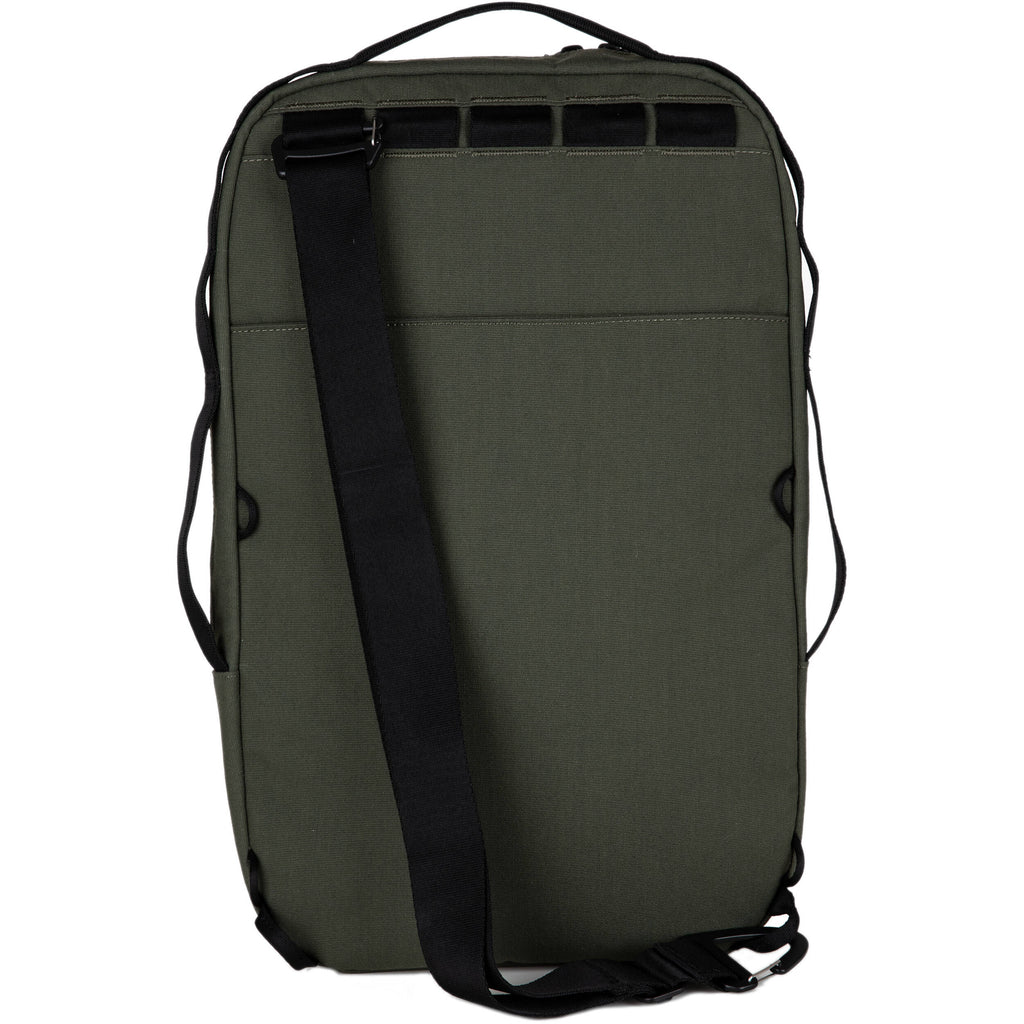 The backpack straps can be clipped to any of the five loops at the top of the bag, meaning you can attach two straps in the traditional style, or attach one strap from corner to corner for a sling-like fit. The Everyday bag is designed to fit in the expansion pocket of the Pakt Travel Backpack.