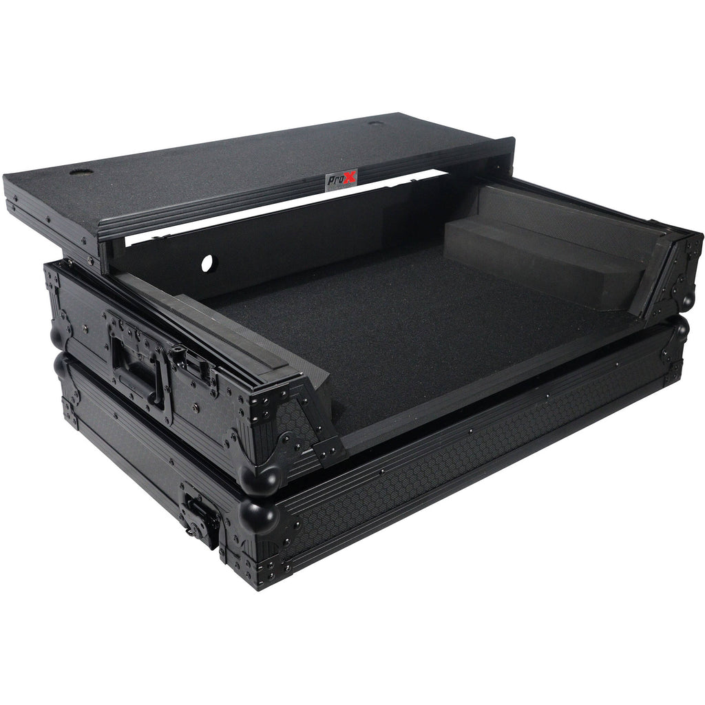 - ProX Flight Case with Laptop Shelf, 1 RU Rackspace & Wheels for RANE ONE (Black on Black)