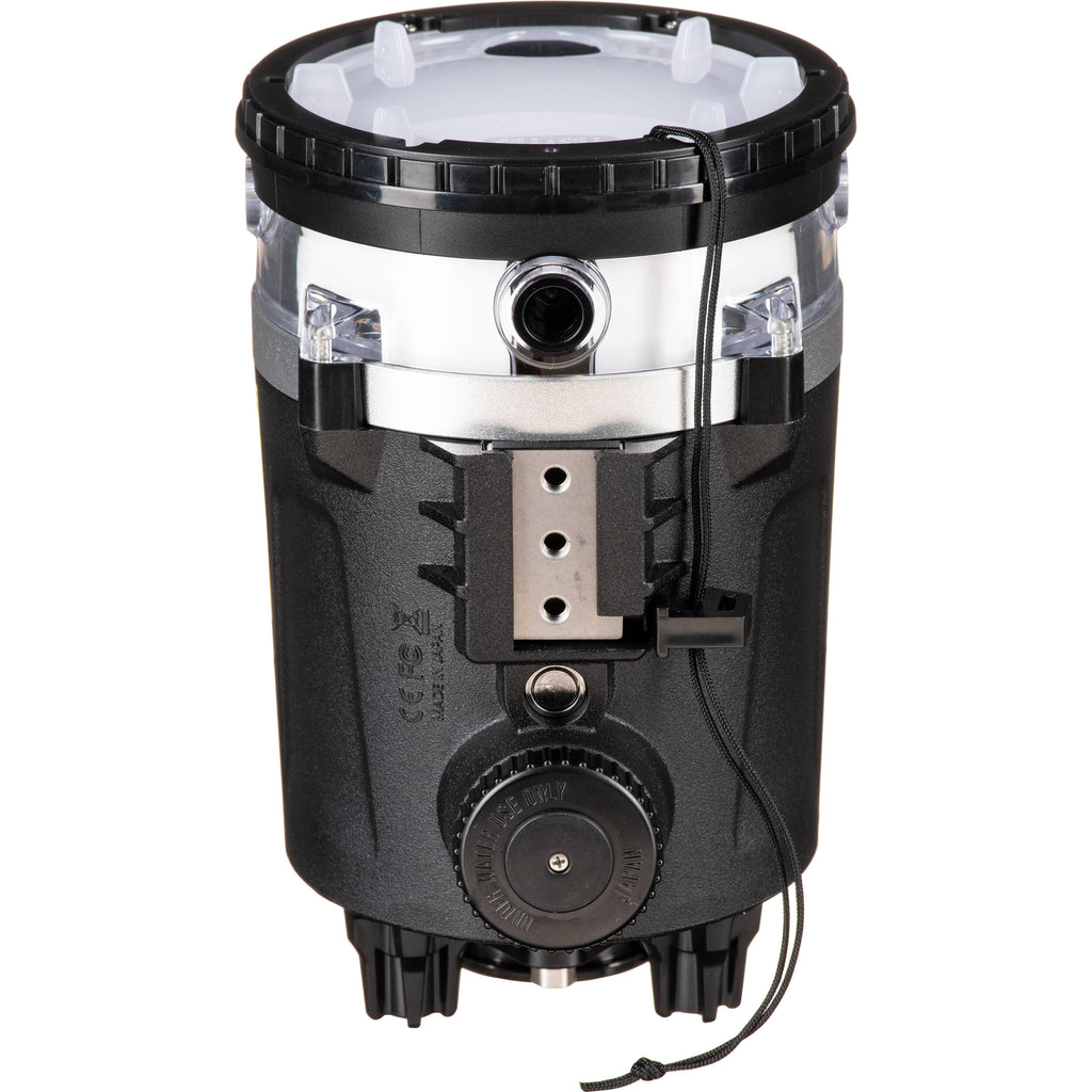 - Configured with a 5-pin sync cord connector and a fiber-optic port for connection to an underwater camera housing