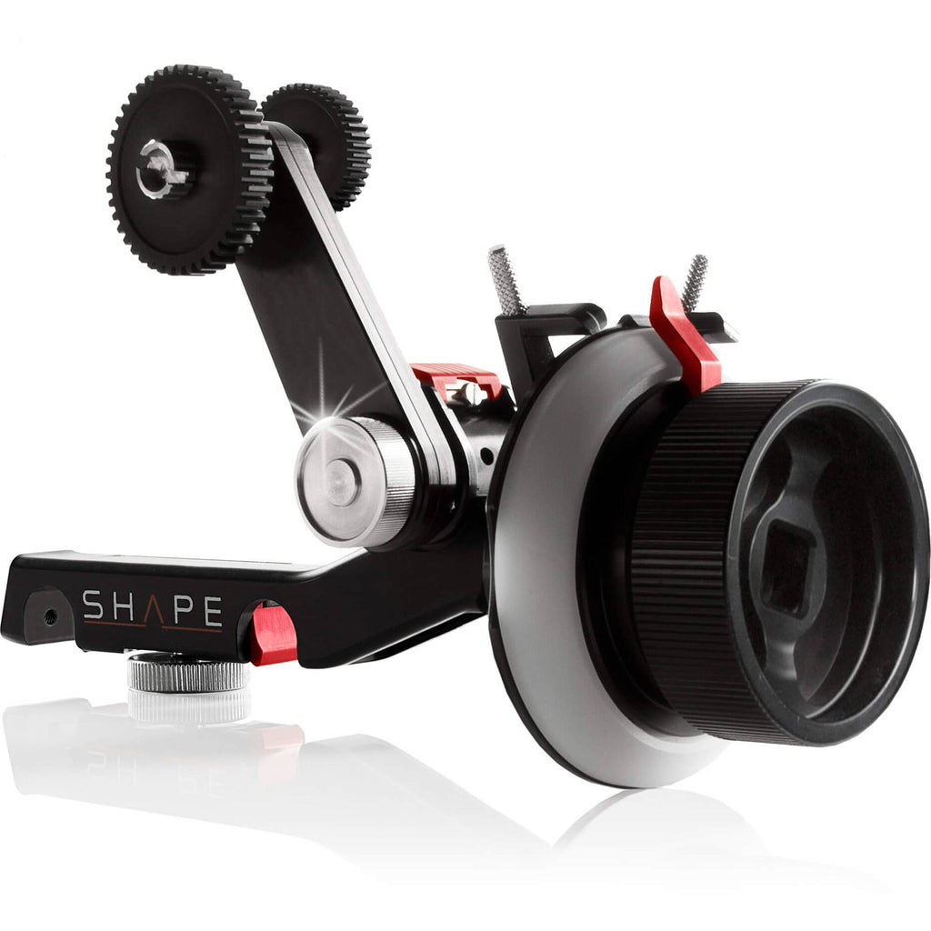 Large 19mm push-button releases allow you to loosen, adjust, and lock an articulation joint by simply pressing, adjusting, and then releasing to lock it in place. UPC: 629266010099 SHAPE Follow Focus ProThe SHAPE Follow Focus Pro mounts on 15mm rods and features an adjustable arm which puts the gear at the optimal position for the lens, no matter what the diameter is. The unit snaps onto 15mm rods, allowing for quick attachment, removal, and re-positioning. Two 0.8 pitch gears come included and give you a choice of either 28 teeth or 43 teeth - depending on the throw distance of the lens. Additional features include two adjustable hard stops, removable marking disc, and an industry standard accessory port for using optional whips and cranks.