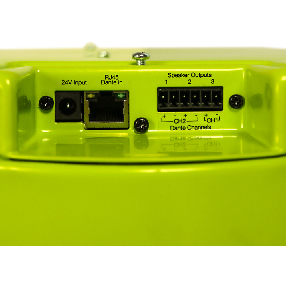 This Dante-enabled coaxial 6.5" SoundTube Entertainment IPD4-CM62-BGM IP-Addressable Speaker has output terminals for connection and power of up to three additional standard CM62-BGM speakers. The speaker incorporates one 6.5" polypropylene woofer with rubber surround and one 1" silk dome tweeter. BroadBeam Ring technology and a tuned port on the baffle provide smooth off-axis performance, mid-range clarity and bass response to 55 Hz (-10 dB). Low-latency digital audio, power, and control are delivered to the speaker via standard category cable; connection is made on the other end to the STNet-Switch or other PoE / PoE+ switch.