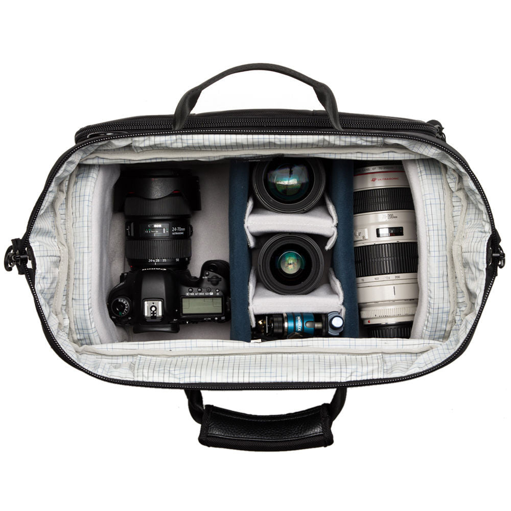 Designed with professional videographers in mind, the Tenba Cineluxe Video Shoulder Bag 16 is sturdy, convenient, and quick. The doctor bag opening at the top only requires a single zipper, and reveals an interior with enough space for mirrorless or DSLR cameras with 3-5 lenses, or professional camcorders and compact cine cameras.